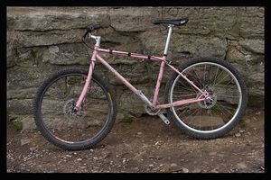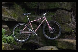Material 4130 Cro-Moly-Stahl, verschweißt. Das Hauptrahmendreieck ist doppelt konifiziert. Horizontale Ausfallenden. Hintere Aufnahmebreite 135 mm , vorbereitet für Federgabeln mit 80mm Federweg