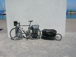 Fahrrad mit angehängtem BOB YAK Anhänger.