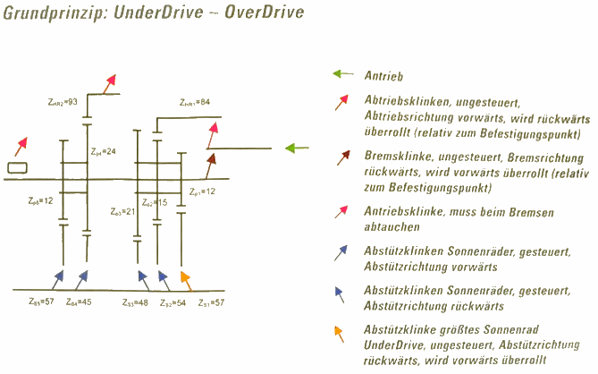 Grundprinzip: UnderDrive - Overdrive einer SRAM G8-Nabenschaltungsnabe.