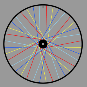 Dieser Artikel konzentriert sich auf den Aufbau eines Hinterrads, weil dies der schwierigere Part ist. Für den Aufbau von Vorderrädern denke man sich den entsprechenden Teil weg, der hier nicht passt. Die Aufbaubeschreibung wird sich mit einem 36-Speichen-Rad befassen.